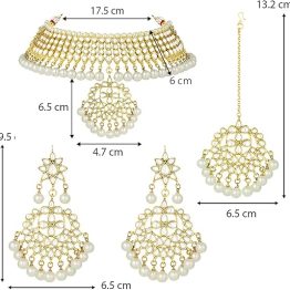 DIMENSIONS (In Inches): Necklace Length – 8.9 Inch x Width – 4 Inch, Pendant Height – 2.3 Inch x Width – 2.4 Inch, Earring Height – 4 Inch x Earring Width – 2.4 Inch, Maang Tikka Length – 5 Inch x Width – 2.4 Inch, Weight – 173.89 gms Occasion: Take your style up a…